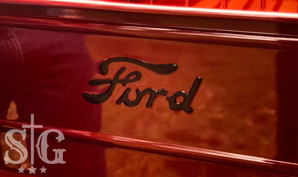 I painted the Ford lettering on this 1930’s tailgate.